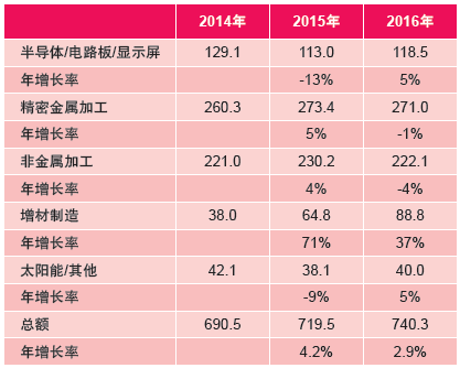 表2:微加工領域的銷售收入(貨幣單位:百萬美元)