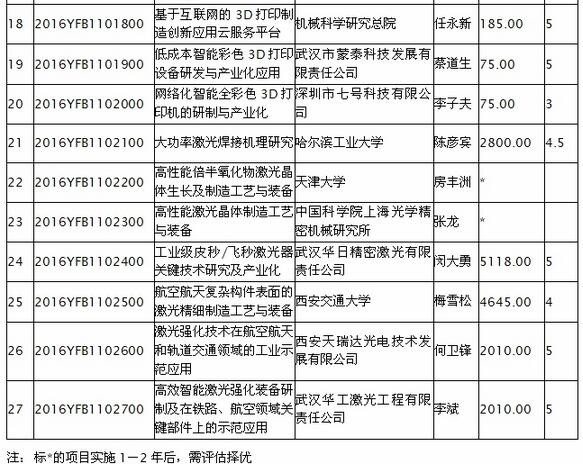 近日,國家重點研發計劃“增材制造與激光制造”重點專項2017年工作會議在北京舉行。主要對2016年已經立項的全部項目進行年度評估工作,后續也將結合評估情況組織專家進行項目抽查,以保障“增材制造與激光制造”重點專項的順利實施。 據OFweek激光網了解,國家重點研發計劃“增材制造與激光制造”重點專項實施周期為5年(2016-2020年),主要工作為突破增材制造與激光制造的基礎理論,取得原創性技術成果,超前部署研發下一代技術;攻克增材制造的核心元器件和關鍵工藝技術,研制相關重點工藝裝備;突破激光制造中的關鍵技術,研發高可靠長壽命激光器核心功能部件、國產先進激光器,研制高端激光制造工藝裝備。 總體而言,國家重點研發計劃“增材制造與激光制造”重點專項致力于基礎理論與前沿技術、關鍵工藝與裝備、創新應用與示范部署,促使我國傳統制造業轉型升級,支撐高端制造業的發展。 2016年,本重點專項在增材制造與激光制造2個方向已啟動實施27個項目,涉及航空航天、醫療、互聯網等多個領域。以下為公示清單: