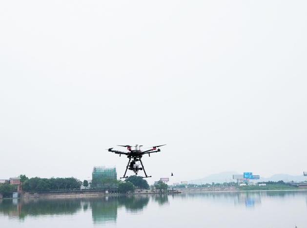 ▲無人機高光譜系統(tǒng)起飛監(jiān)測河流水污染示意圖