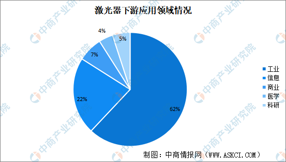 激光具有單色性好、相干性好、方向性好和亮度高等特點,可以用于醫療、工業、通信、商業等多個領域。自1960年世界上第一臺紅寶石激光器面世以來,激光技術開始應用于醫學領域。經過60余年的發展,激光醫學已初步發展成為一門體系較為完整且相對獨立的新型交叉學科,在醫學科學中扮演著越來越重要的角色。目前,我國激光器在醫學領域的應用市場占比約為4%。