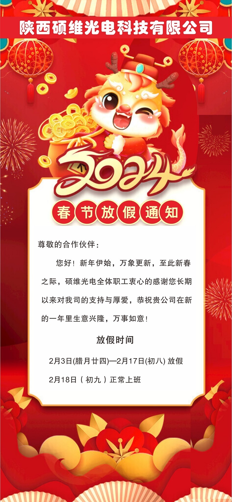 春節放假通知